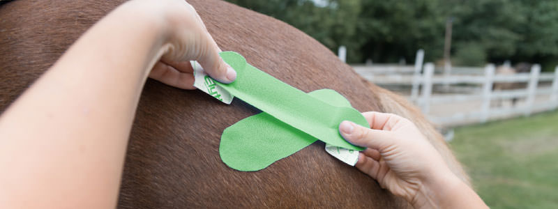 Das Kinesiotaping ist eine Tapetechnik, die anders als das stabilisierende Tape die Bewegungsfähigkeit von Gelenken und Muskeln zulässt und somit Heilungsprozesse optimiert. Bei dem Tape handelt es sich um ein elastisches, textiles, buntes Tape, das in speziellen Te4chniken auf das Fell aufgebracht wird
